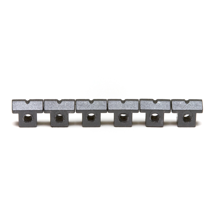 Pontets en polymère. Matériau autolubrifiant (5 fois supérieur au graphite). A chaque mouvement de la corde, un mince filet de Teflon (le lubrifiant interne le plus efficace) est créé. Le son est plein et plus brillant avec plus de sustain que le cuivre ou le metal.
