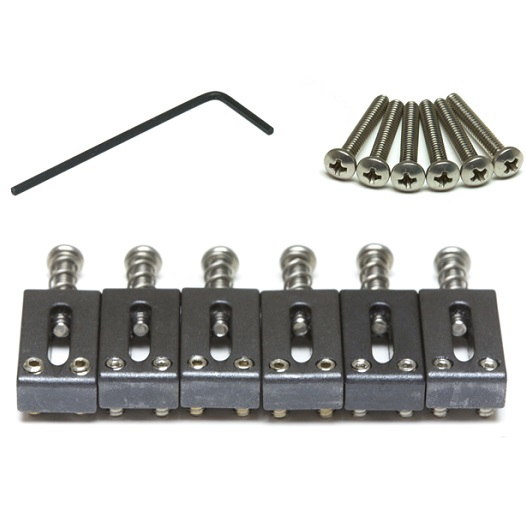 Pontets en polymère. Matériau auto lubrifiant (5 fois supérieur au graphite). A chaque mouvement de la corde, un mince filet de Téflon (le lubrifiant interne le plus efficace) est créé. Le son est plein et plus brillant avec plus de sustain que le cuivre ou le métal.