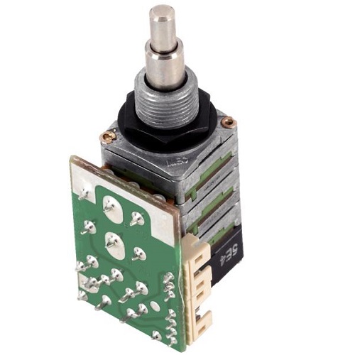 Potentiomètre étagé Push/Pull avec carte PCB intégrée. On le retrouve sur l'électronique de certaines basses Warwick.