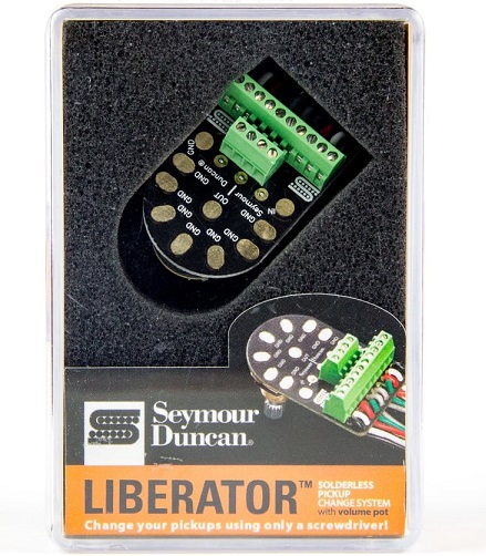 Le système LIBERATOR de Seymour Duncan est en fait un mini potentiomètre au format US monté sur une carte permettant de se "libérer" des soudures quand on change de micro(s).