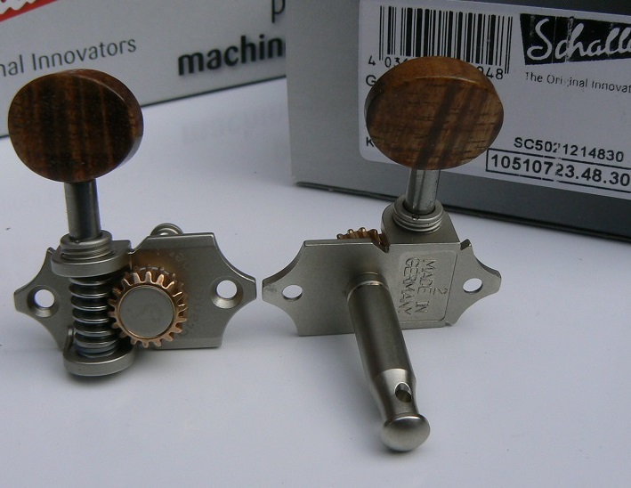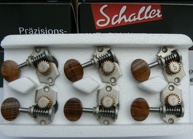 JEU COMPLET DE 6 MÉCANIQUES DE MARQUE SCHALLER MODÈLE SATIN PEARL SÉRIE GRANDTUNE BOUTONS KOA FLAMME