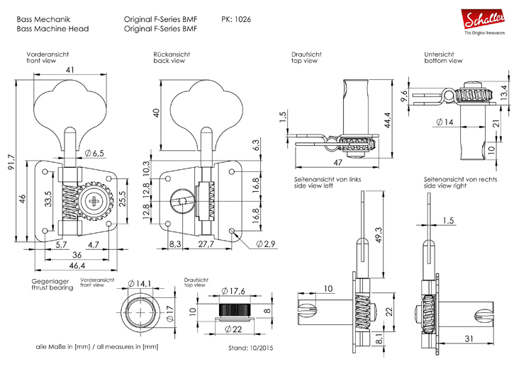 La série BMF possède une embase plus large (un bouton plus gros) et une tige d'axe plus longue. C'est en fait la copie conforme des mécaniques équipant les Fender Jazz Bass et Precision Bass.