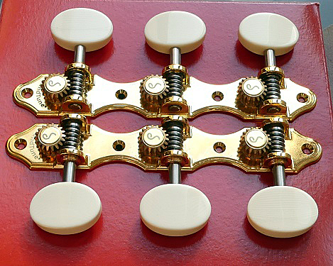 JEU COMPLET DE MECANIQUES DE MARQUE SCHALLER SERIE GRANDTUNE CLASSIC MODELE HAUSER DORE BOUTONS GALALITH  AXES NOIRES A ROULEMENT A BILLES