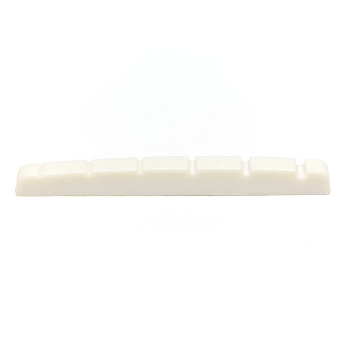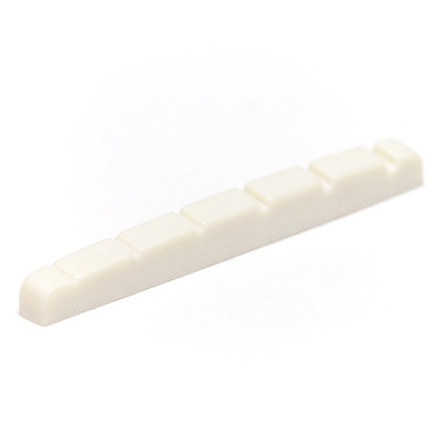 Cependant Fender utilise des sillets avec une base incurvée pour certains de ses modèles.  C'est pourquoi on trouve sur le marché des sillets à base plate mais aussi à base incurvée A cet égard, vous remarquerez qu'il y a une patte sous ce type de sillet (PQ-5000-00 chez Graph-Tech) afin de le rendre "plat" et de pouvoir l'installer.