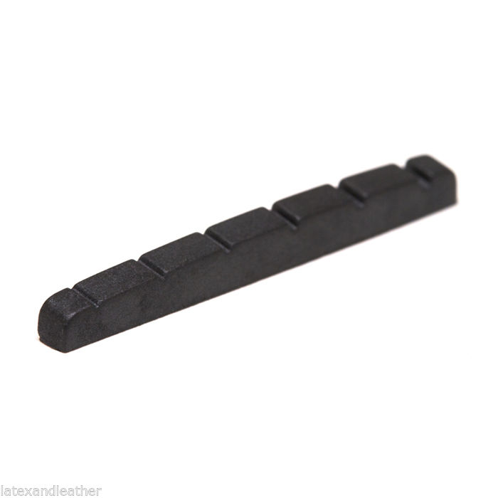 Cependant Fender utilise des sillets avec une base incurvée pour certains de ses modèles.  C'est pourquoi on trouve sur le marché des sillets à base plate mais aussi à base incurvée A cet égard, vous remarquerez qu'il y a une patte sous ce type de sillet (PQ-5000-00 chez Graph-Tech) afin de le rendre "plat" et de pouvoir l'installer.