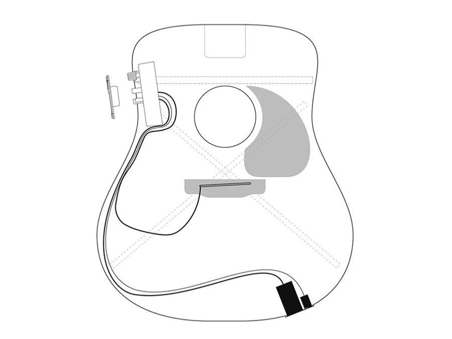 - Le compartiment pour la pile avec le câblage pour le relier au pré-ampli.
