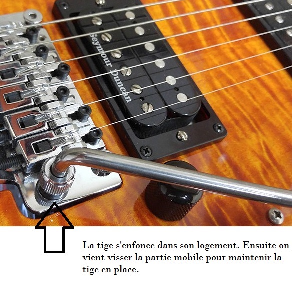 Pour les tremolos où la tige s'enfonce puis se visse pour se fixer. On en trouve sur certains tremolos type Schaller, Wilkinson, Ibanez ou Floyd Rose sous licence, Floyd Rose Special etc. Cette tige est plus haute que les Floyd Rose Schaller