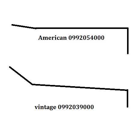 Plus basse que les American Standard au niveau du chevalet. Elle possède une poignée plus anguleuse que la version Vintage Fender. Nous avons essayé de faire un schéma pour montrer les différences.
