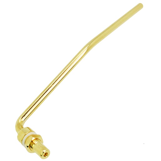 Elle est constituée d'une tige de vibrato en métal de 6mm sur laquelle vient se visser (par clé allen) une partie métallique de 8mm. L'ensemble vient se fixer au chevalet grâce à une goupille en métal de 12.2mm de diamètre extérieur qui se visse.