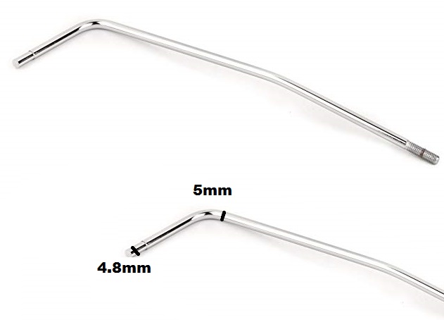 Diamètre 4.8mm (en fait le diamètre de la tige fait 5mm mais vous avez un rétréceissement de 4.8mm au niveau de la fixation tige/vibrato)
