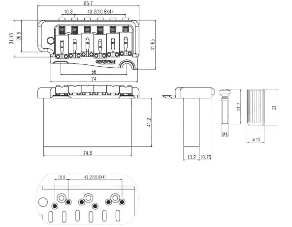 Les chevalets tremolo type Fender à deux points d'ancrage sont souvent considérés comme plus souples et plus faciles à utiliser que les chevalets à six vis vintage. La marque anglaise Wilkinson propose ici un chevalet à deux points d'ancrage d'un espacement de 56mm.