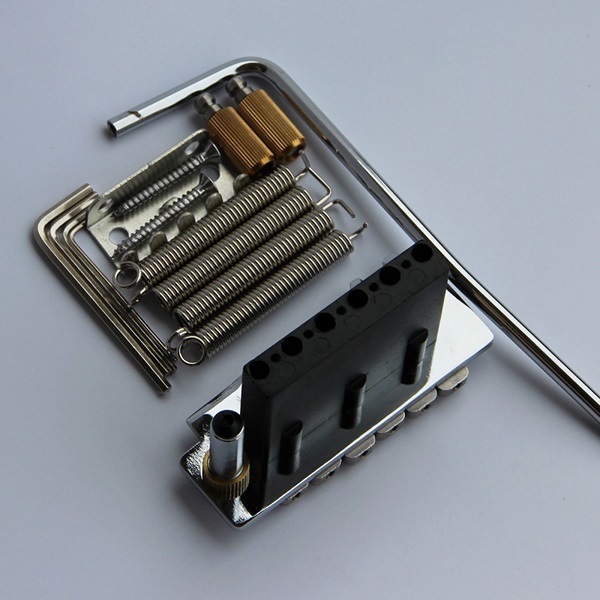 - 1 CHEVALET GRAVE WILKINSON TYPE MODERNE A DEUX POINTS D'ANCRAGE avec barillet plein. Pontets réglable individuellement. Logement vibrato exclusif WILKINSON permettant de coincer la tige tout en lui proférant une sensation de douceur dans le déplacement.