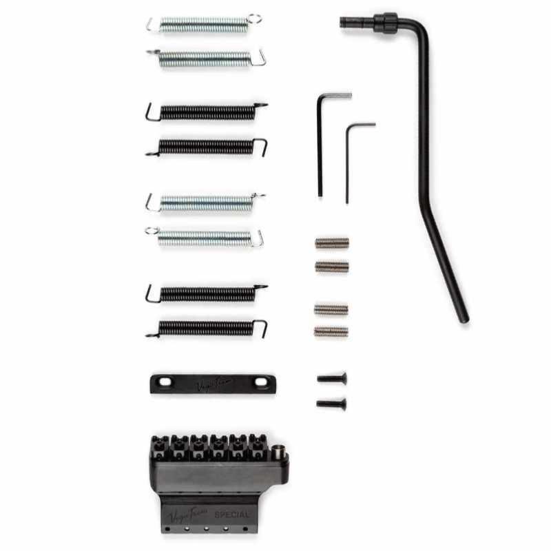 Vous vouliez un chevalet flottant qui ne vous oblige pas à percer ou à modifier votre guitare ST bien-aimée, alors nous l’avons fait. Vous vouliez un chevalet de vibrato qui ne dépassait pas plus que le chevalet d’origine, et le voici. Vous imaginiez une liberté de mouvement totale et une barre qui ne vous dérangeait jamais et la voici. Vous avez fantasmé sur un trémolo exempt de bruits indésirables et maintenant ce rêve est devenu réalité. Vous vouliez vous débarrasser des tracas des microtuners. Vous l’avez. Bienvenue dans le VT1 UltraTrem : le trémolo, réinventé.